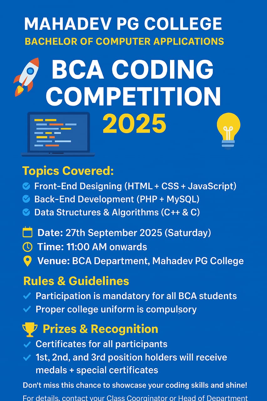 Mahadev PG College is organising coding competition for its BCA students where e...
