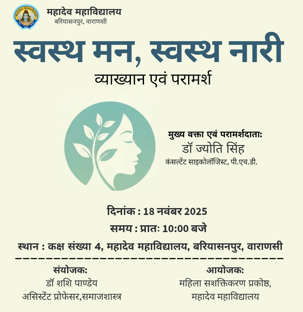 स्वस्थ मन, स्वस्थ नारी : व्याख्यान एवं परामर्श